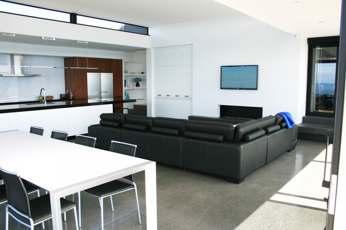 Full-height glazing maximises natural light, views, and indoor-outdoor connection, reinforcing the home’s relationship to its coastal setting while maintaining a sense of protection and privacy.